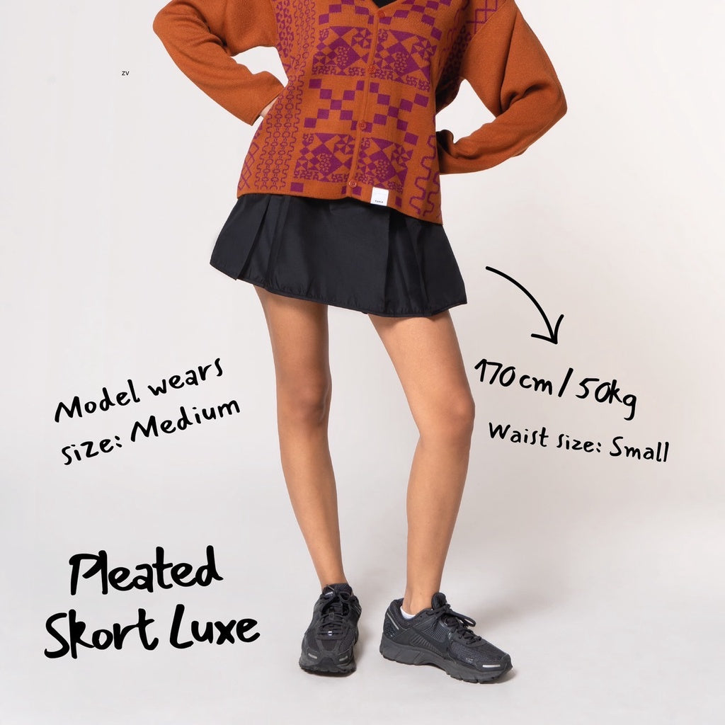Imagine a skirt, but it is essentially a short. The freshest rendition of our luxe nylon skort range comes with a full front panel with pleat detail. Giving the piece A-line silhouette for a more refined look while still maintaining comfort as a short and from the nylon material.